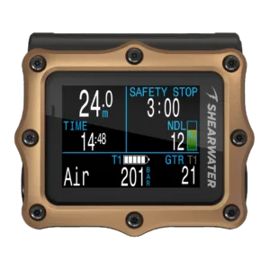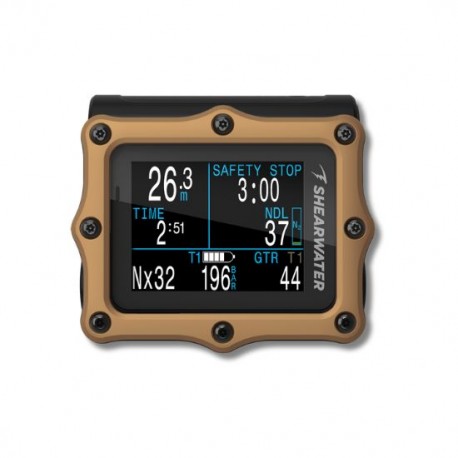 Die Luftintegration mit bis zu vier Shearwater-Sendern lässt Spielraum, um von einem ersten Computer zu einer leistungsstarken, bewährten, fortschrittlichen technischen Tauchlösung zu wachsen. Der Computer wird mit der bewährten und leicht zu findenden, vom Benutzer austauschbaren einzelnen AA-Batterie und dem vertrauten ergonomischen, kompakten Formfaktor geliefert.
