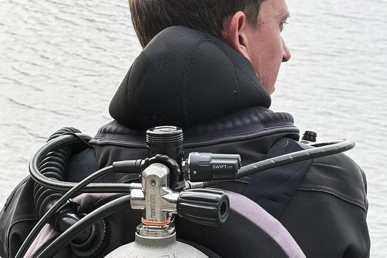 The battery life for the Swift GPS is up to 100 dive hours (100 one-hour dives, with 20 minutes GNSS on-time before and after each dive).